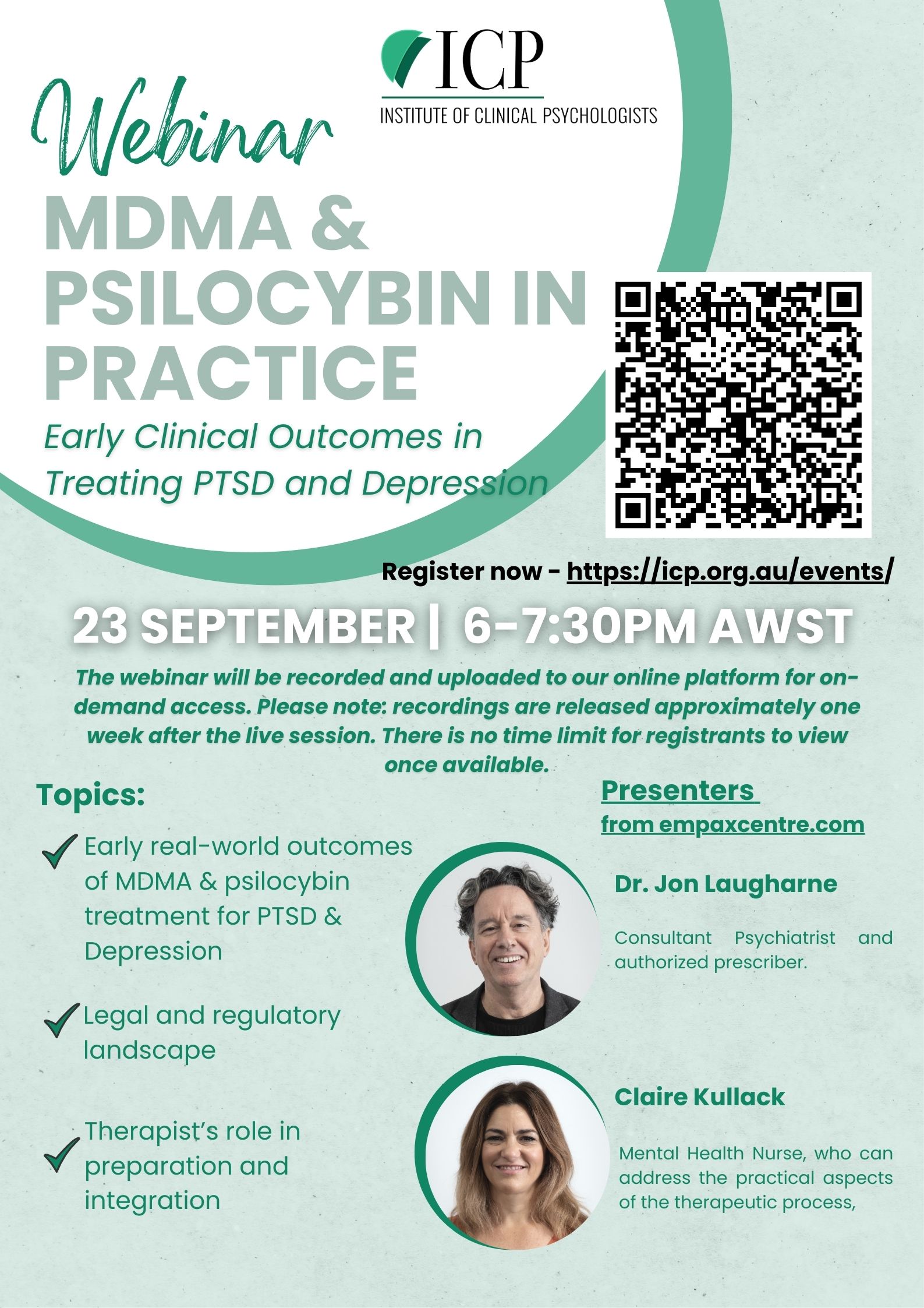 This session explores; early real-world outcomes of MDMA & psilocybin treatment for PTSD & Depression, the legal and regulatory landscape and also the therapist’s role in preparation and integration.